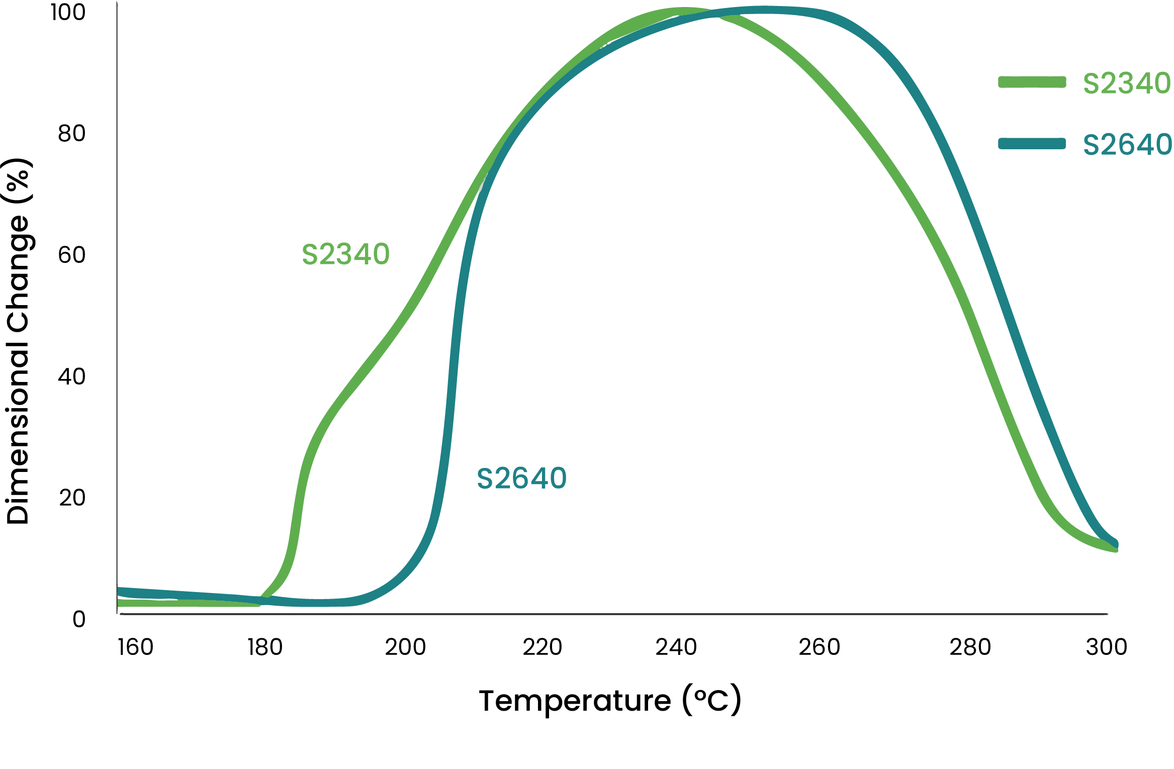 Expansion starts gradually at the Tstart (activation) and reaches its peak expansion diameter at the Tmax (Maximum expansion temperature).
